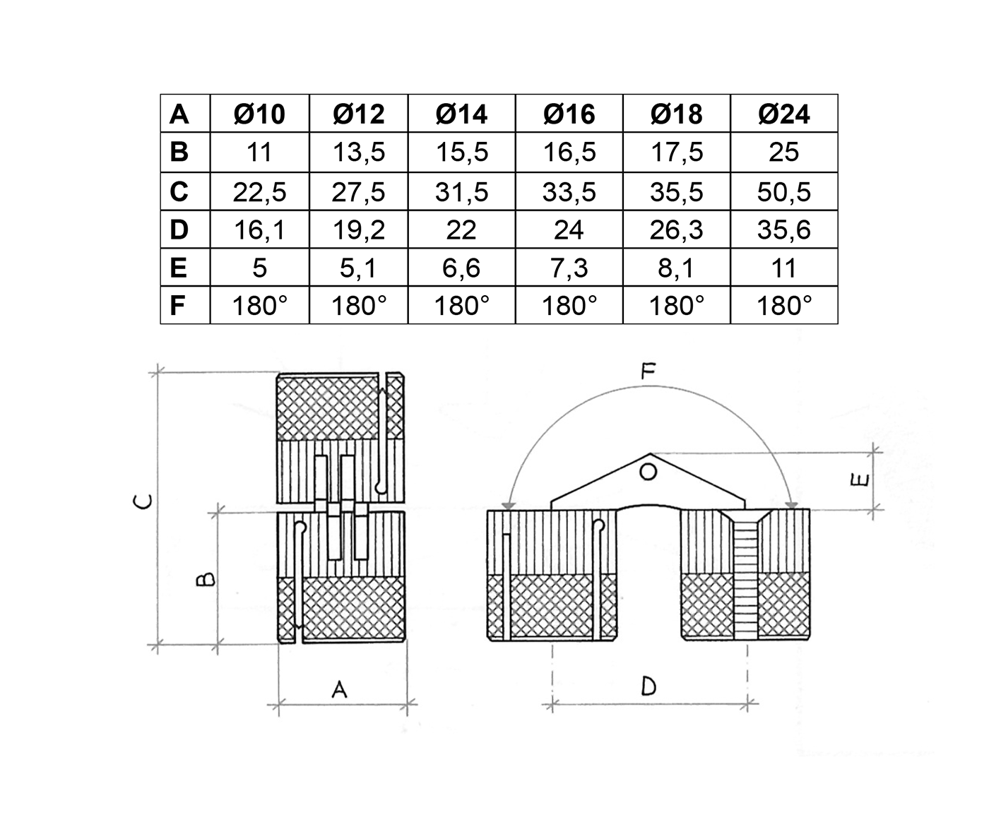 | Misure | Ø mm. 10, Ø mm. 12, Ø mm. 14, Ø mm. 16, Ø mm. 18, Ø mm. 24 |
