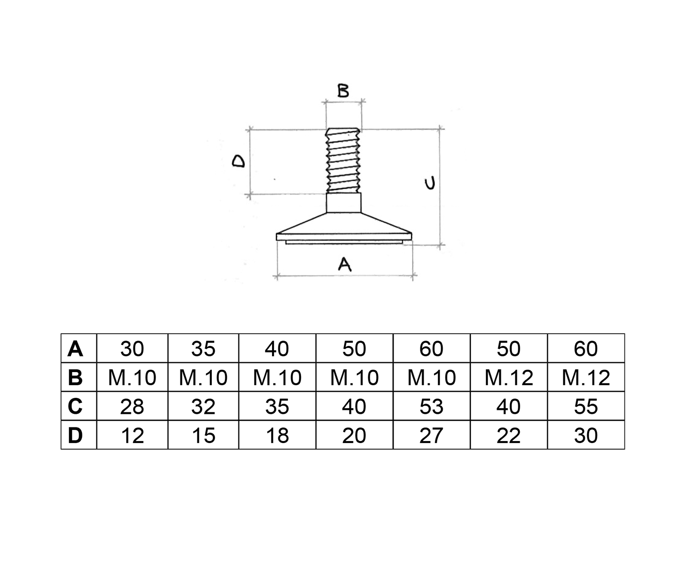 | Misure | Ø mm. 30xM. 10, Ø mm. 35xM. 10, Ø mm. 40xM. 10, Ø mm. 50xM. 10, Ø mm. 50xM. 12, Ø mm. 60xM. 10, Ø mm. 60xM. 12 |