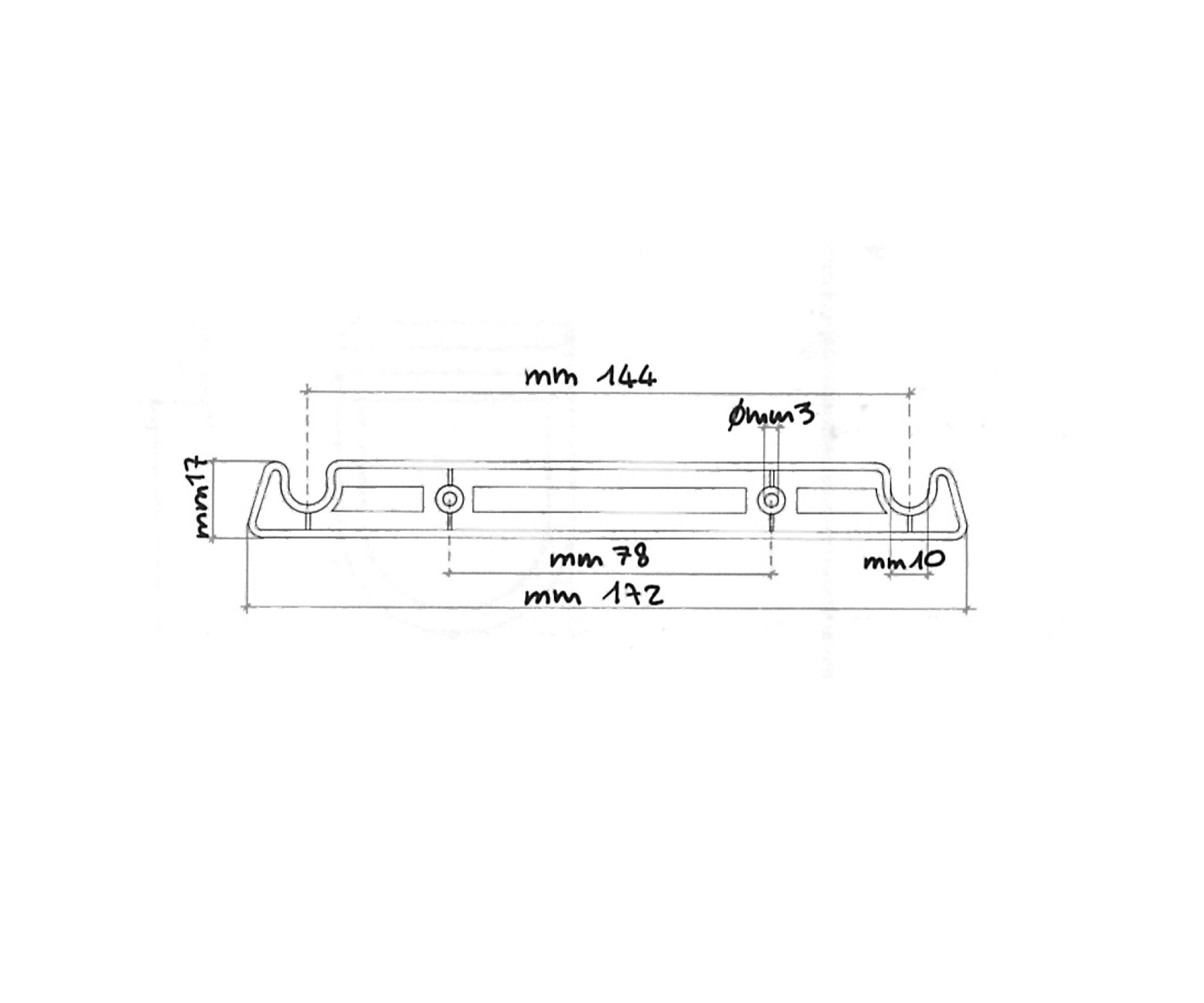 Registrabile in tre direzioni. Parte portante in acciaio. Fissaggio a spine Ø mm. 10. Interasse mm. 32, utilizzabile sia con tassello a gancio sia scorrevole su barra.