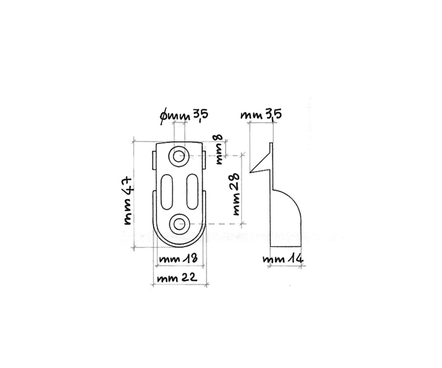 Registrabile in tre direzioni. Parte portante in acciaio. Fissaggio a spine Ø mm. 8. Interasse mm. 32, utilizzabile con tassello a gancio.