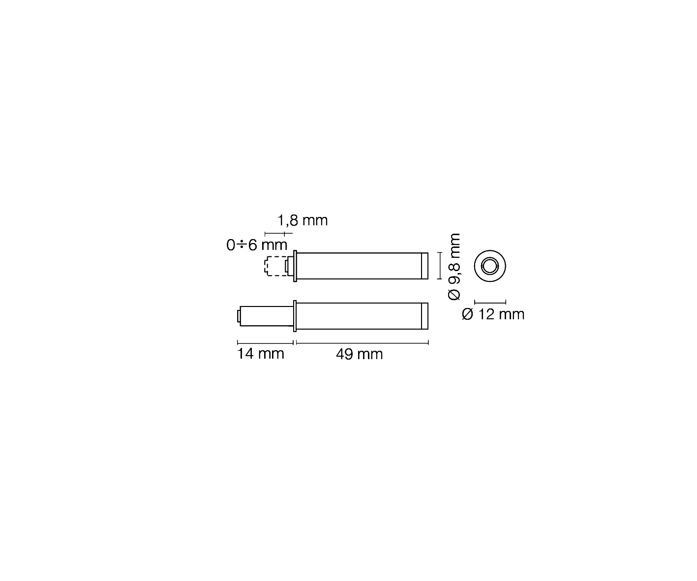 Ø mm. 10, corsa mm. 14, con paracolpo.