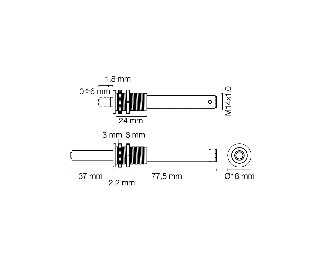 Ø mm. 10, corsa mm. 37, con paracolpo.