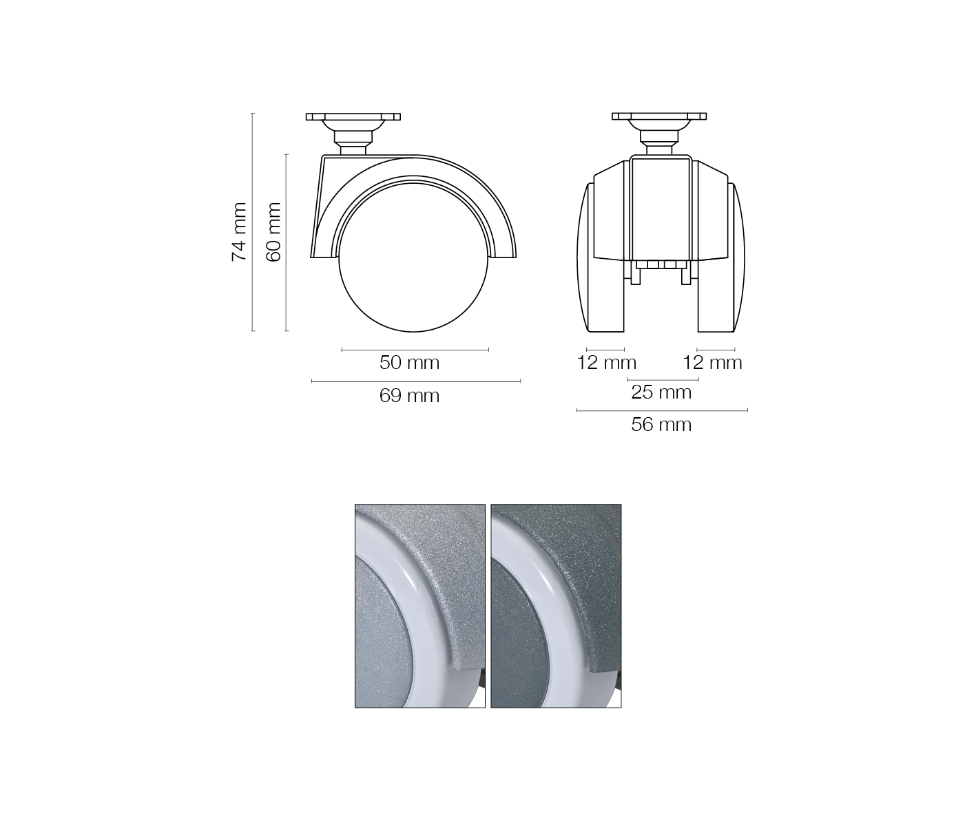 Ø 60, with rubber and brake.