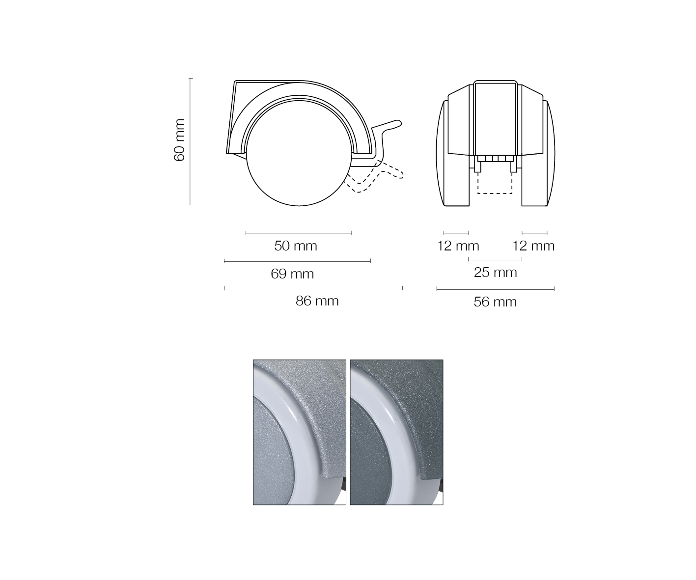 Aluminium grey – upon request, Dark grey – upon request, Black