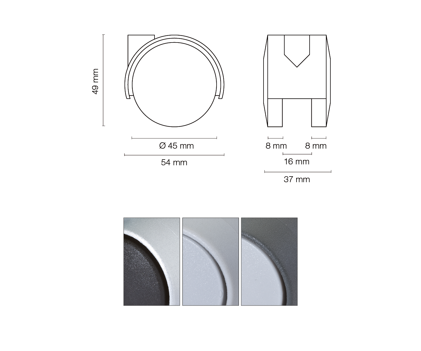 Aluminium grey – upon request, Dark grey/light grey wheel – upon request, Black, Nickeled/black wheel