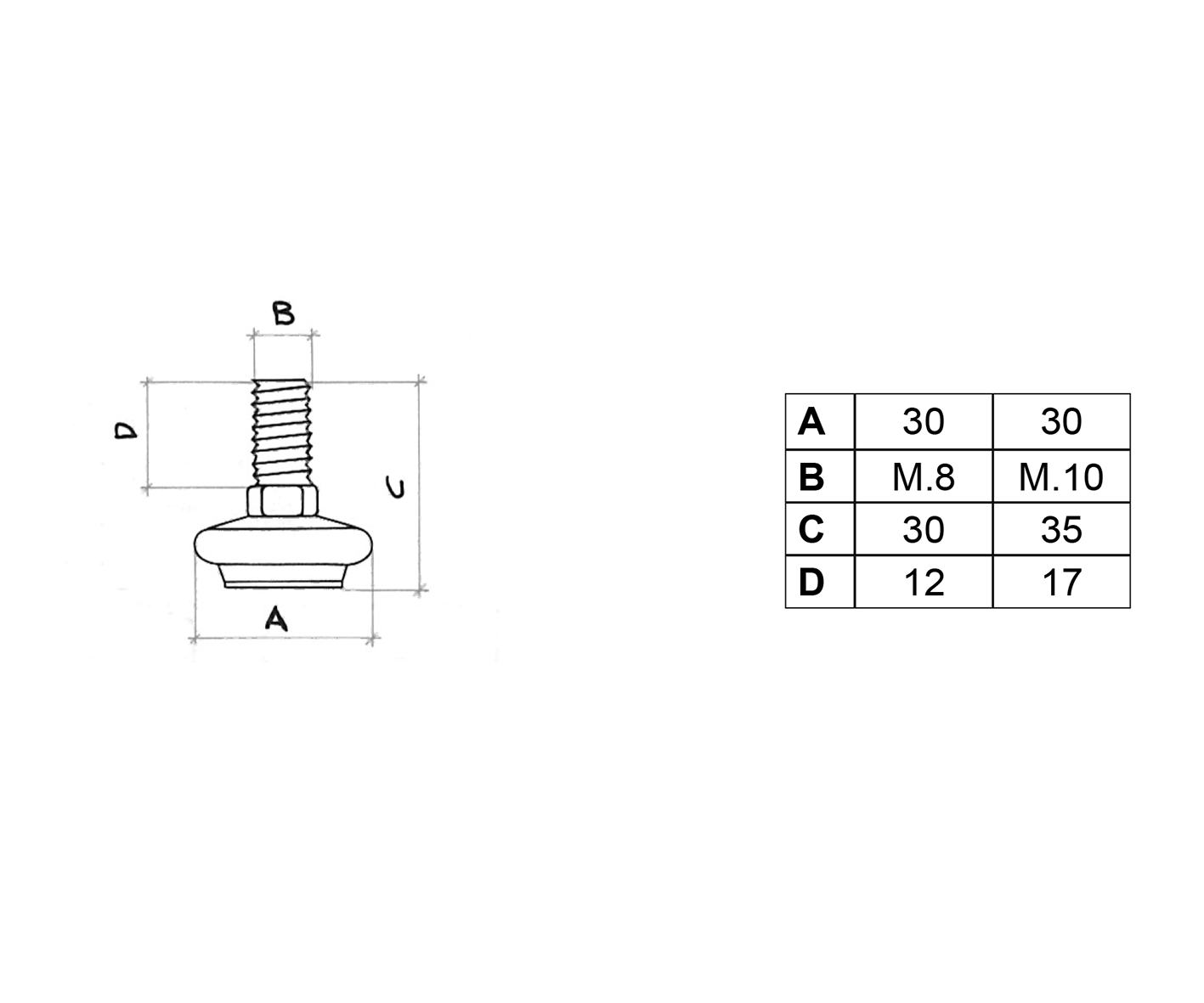 | Measures | Ø mm. 30xM. 10, Ø mm. 30xM. 8 |