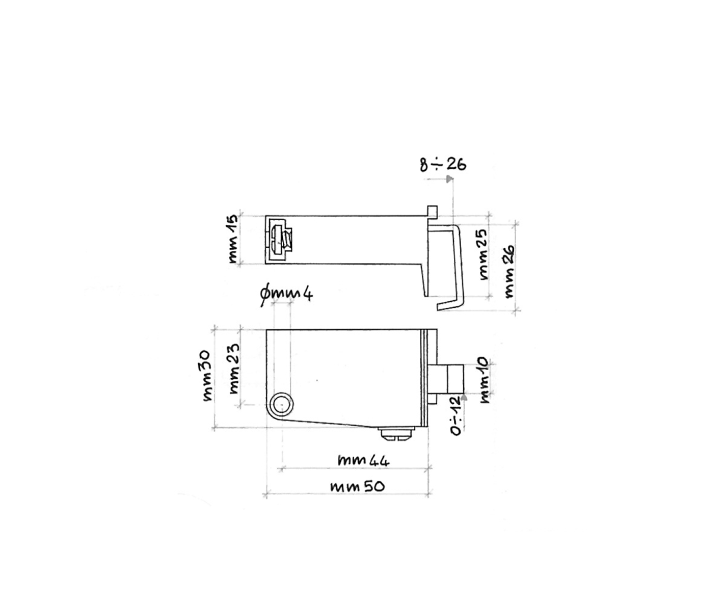 Adjustable into three directions. Load-bearing structure made of steel. Fixing by pins Ø mm. 8. Axle spacing mm. 32, usable with steel anchor with hook.