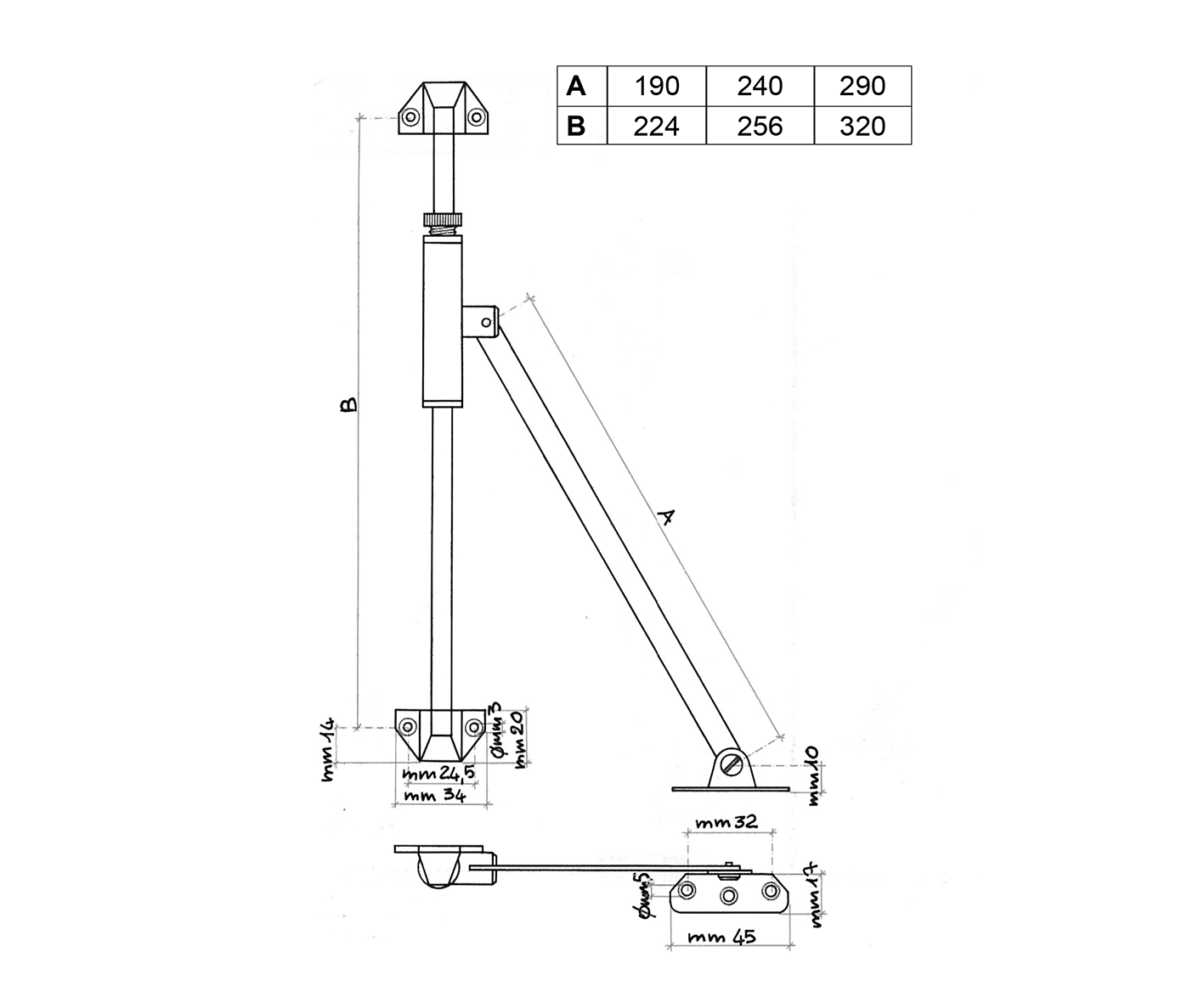 Adjustable into three directions. Load-bearing structure made of steel. Fixing by pins Ø mm. 8. Axle spacing mm. 32, usable with steel anchor with hook.