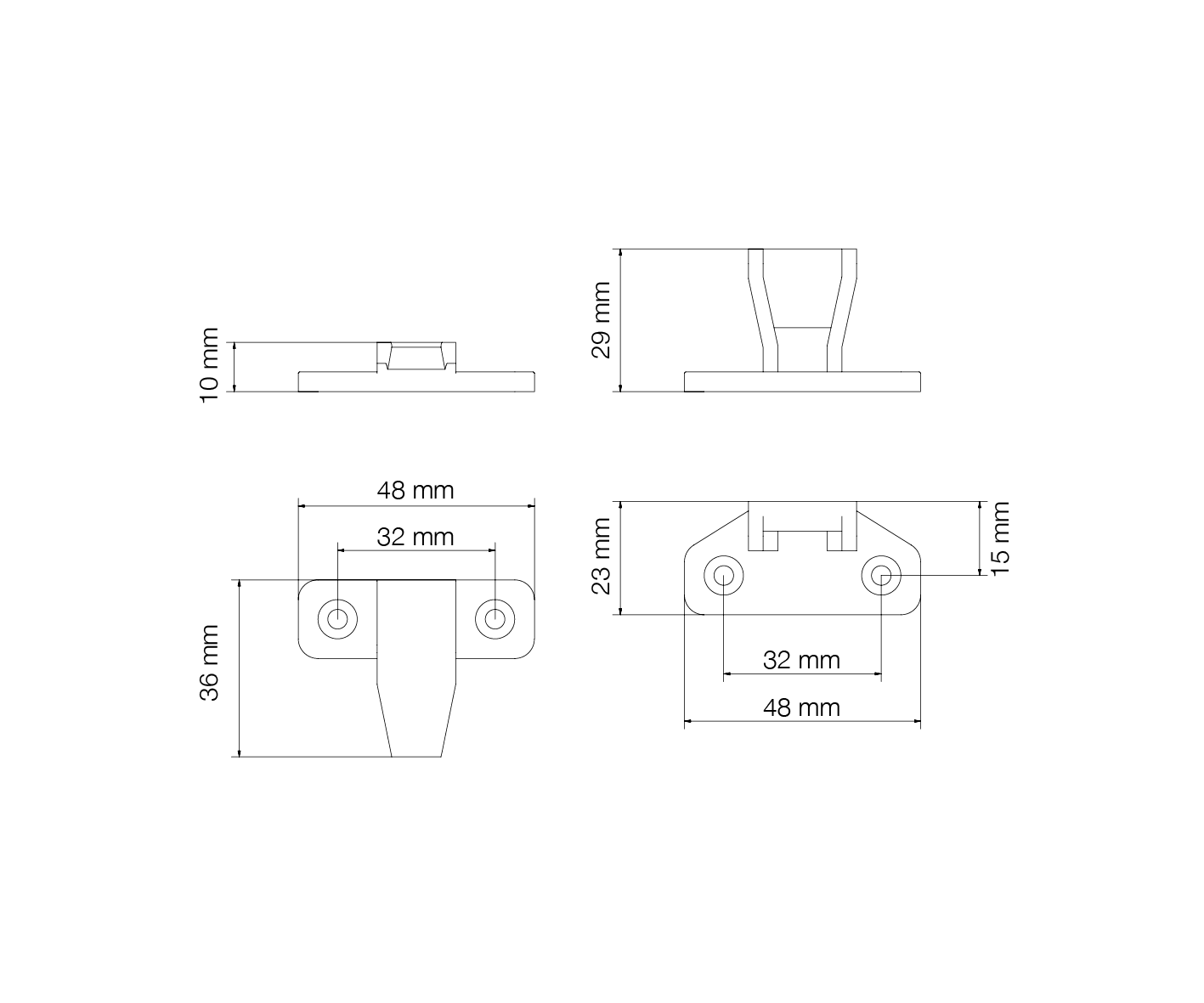 Adjustable into three directions. Load-bearing structure made of steel. Fixing by pins Ø mm. 8. Axle spacing mm. 32, usable with steel anchor with hook.