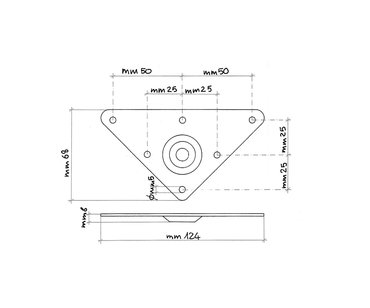 Adjustable into three directions. Load-bearing structure made of steel. Fixing by pins Ø mm. 8. Axle spacing mm. 32, usable with steel anchor with hook.