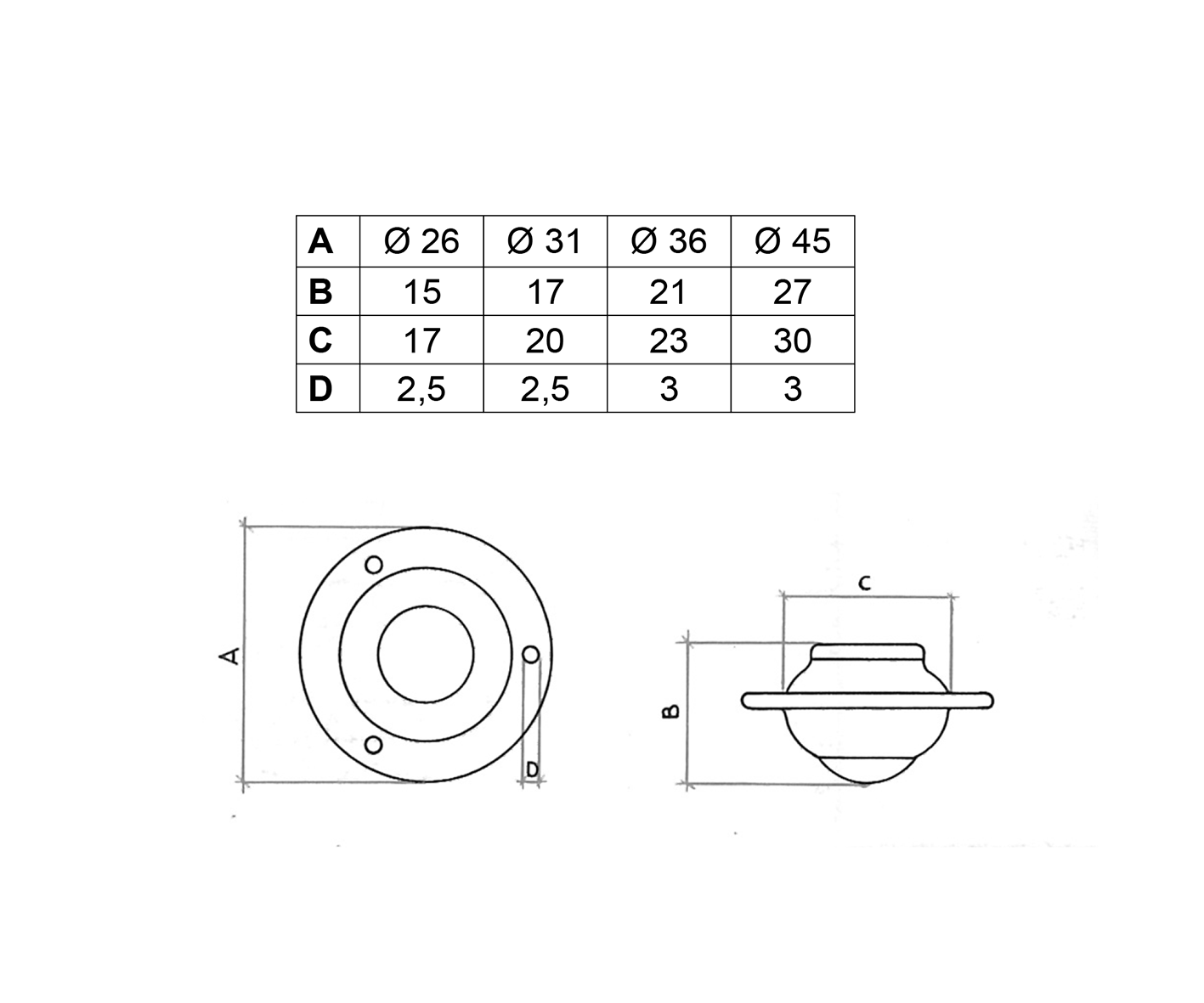 | Measures | Ø mm. 25, Ø mm. 30, Ø mm. 35, Ø mm. 40 |