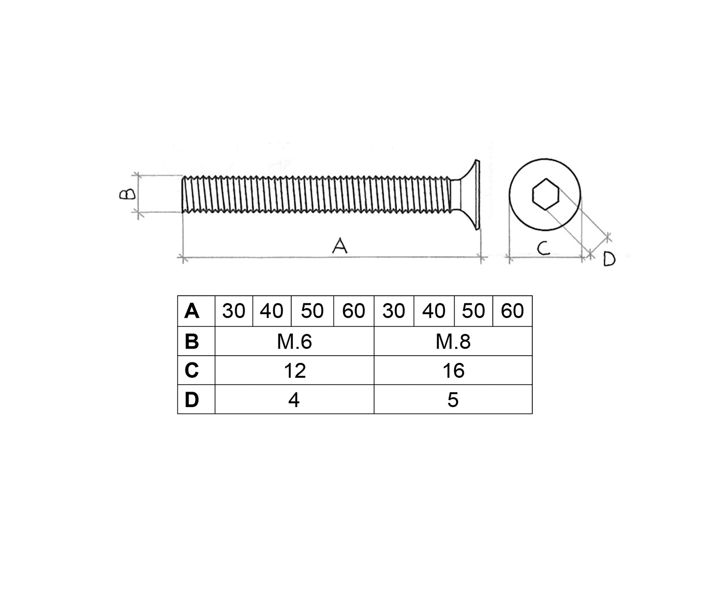 Connecting bolt 7x36xM.6, brass sleeve art. 0132 10x14xM.6 or nylon sleeve art. 0513 11x11xM.6, plastic cover cap.