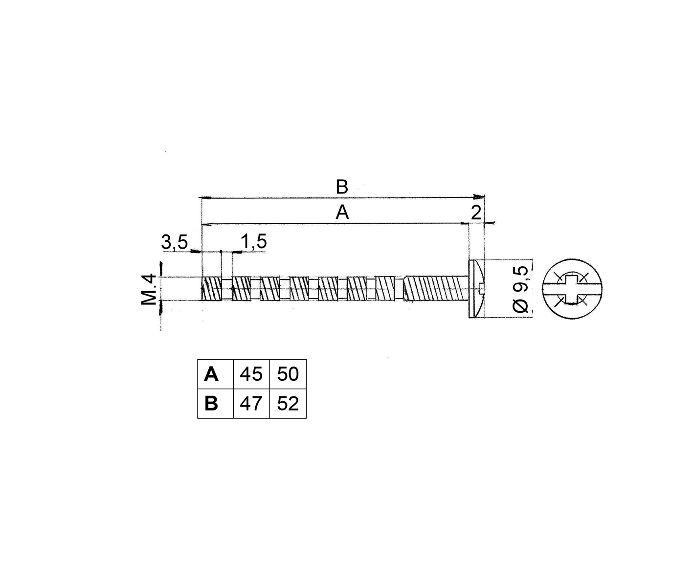 Connecting bolt 7x36xM.6, brass sleeve art. 0132 10x14xM.6 or nylon sleeve art. 0513 11x11xM.6, plastic cover cap.