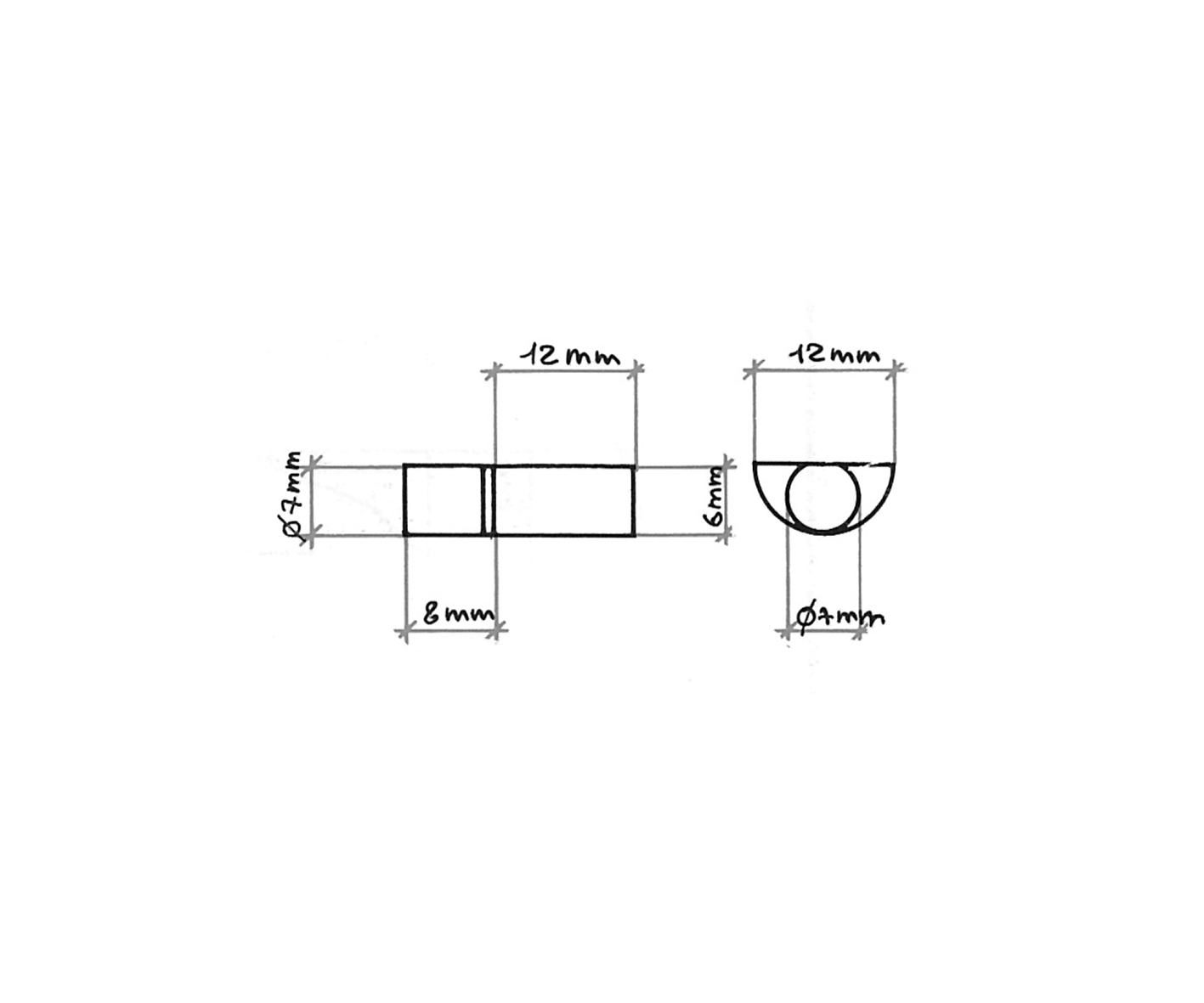 Connecting bolt 7x36xM.6, brass sleeve art. 0132 10x14xM.6 or nylon sleeve art. 0513 11x11xM.6, plastic cover cap.
