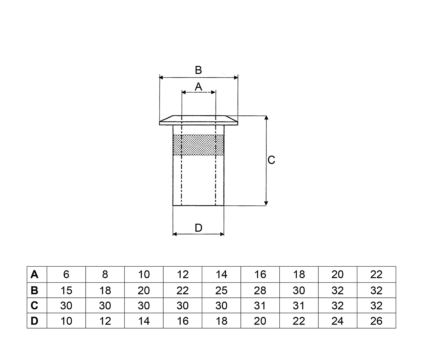 Ø mm. 6, Ø mm. 8, Ø mm. 10, Ø mm. 12, Ø mm. 14, Ø mm. 16, Ø mm. 18, Ø mm. 20, Ø mm. 22