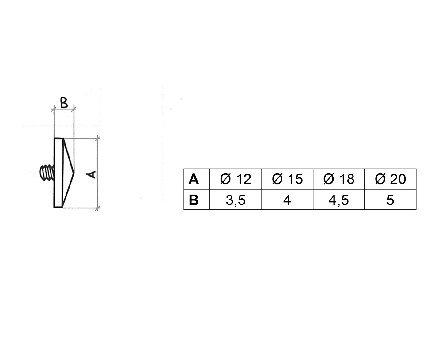 Ø mm. 12, Ø mm. 15, Ø mm. 18, Ø mm. 20
