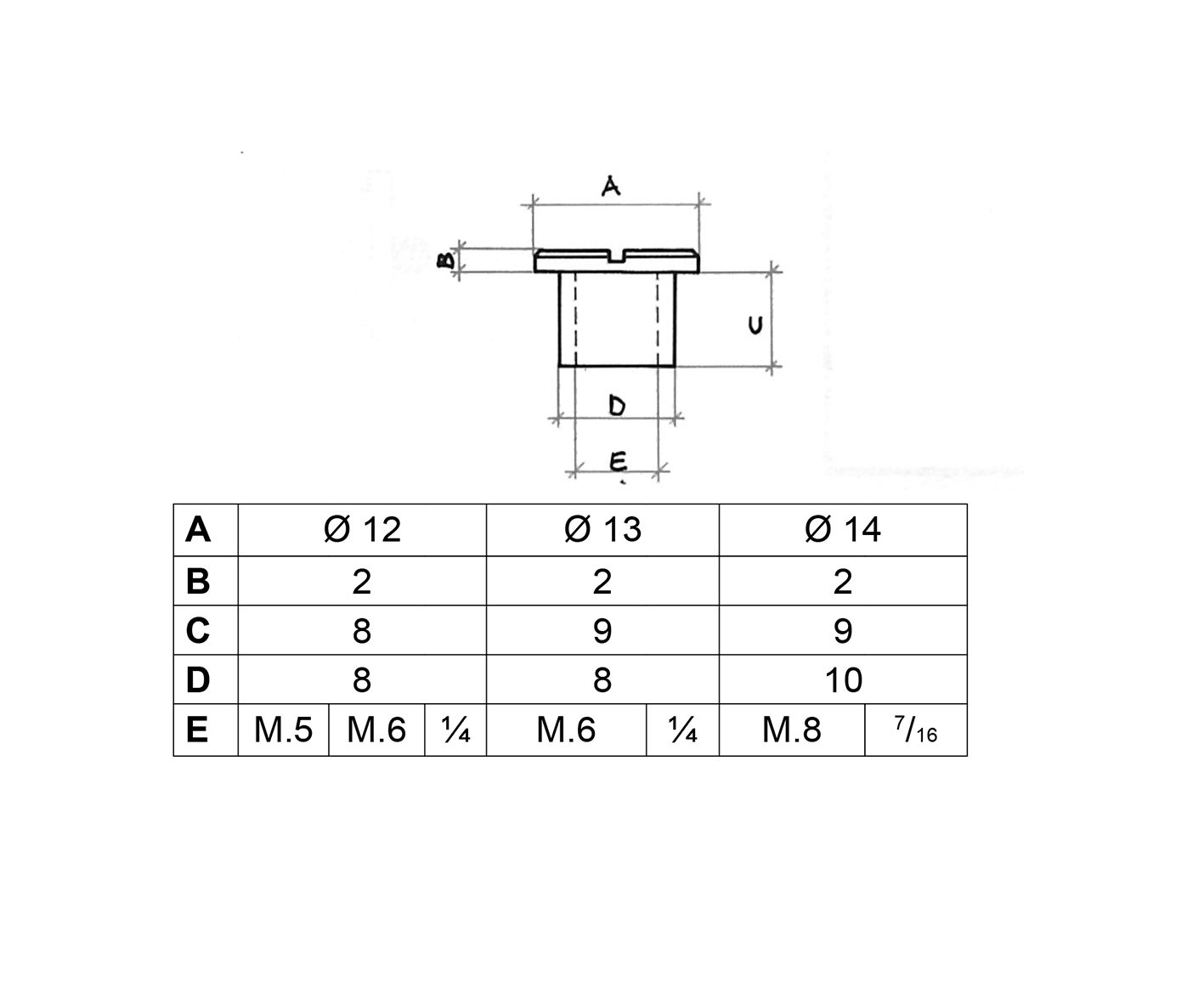 | Misure | 1/4, 7/16, M. 5, M. 6, M. 8 |