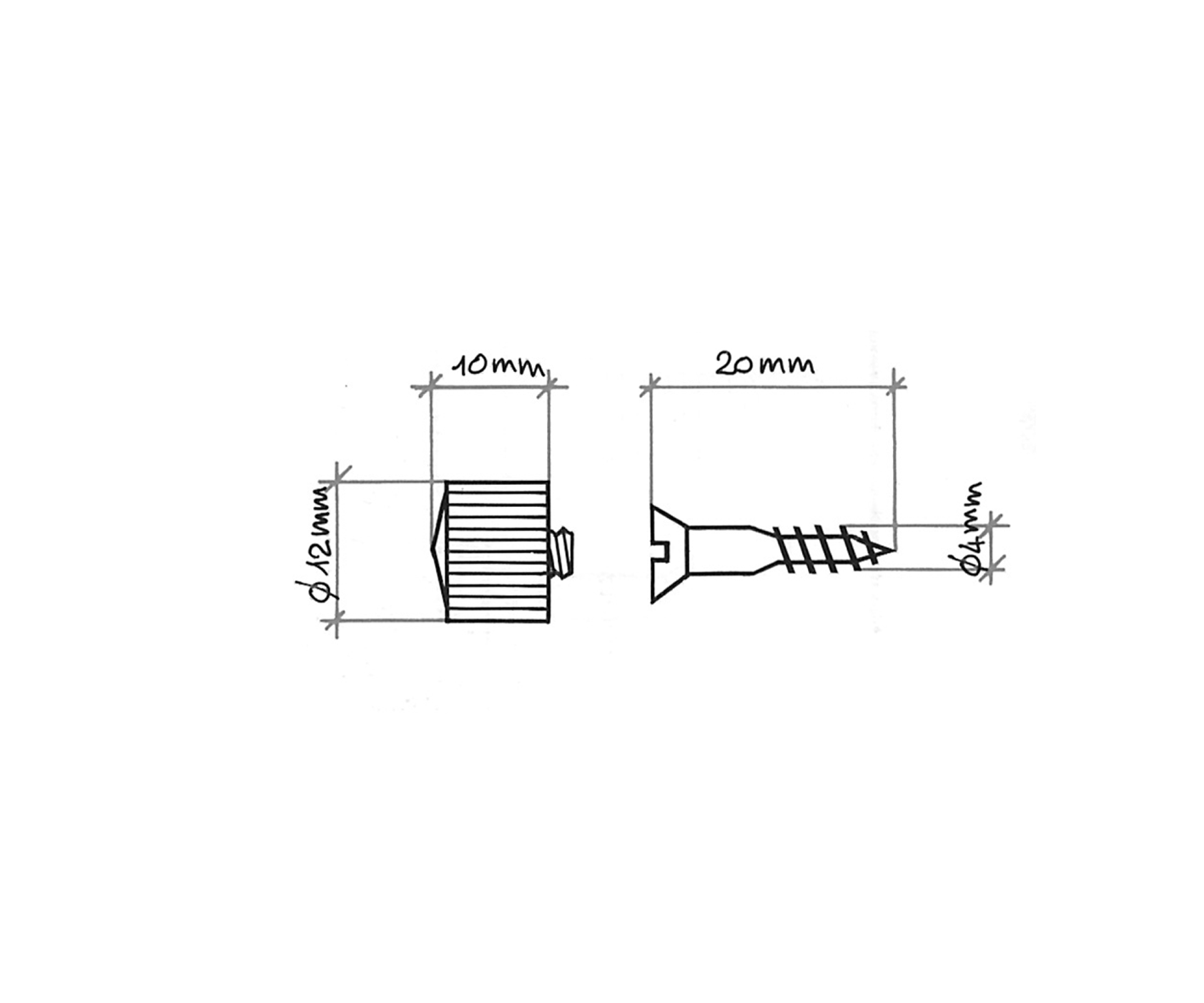 Tirantino 7x36xM.6, bussola ottone art. 0132 10x14xM.6 o nylon art. 0513 11x11xM.6, fondello plastica.