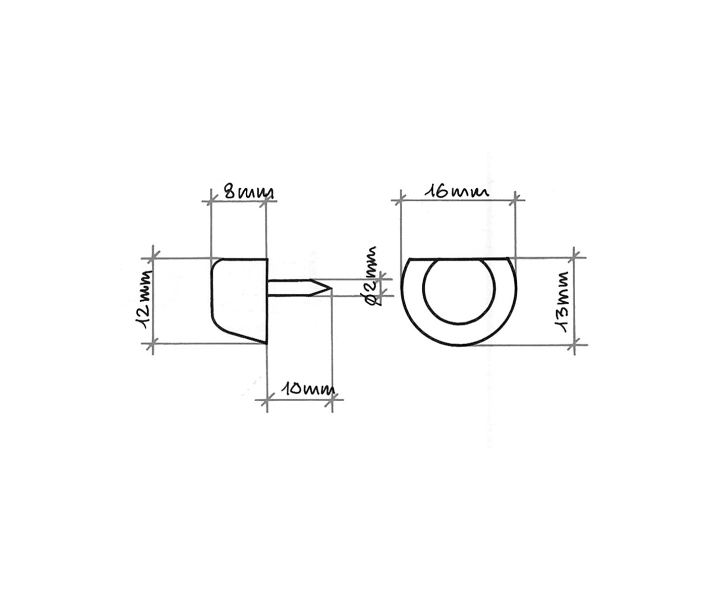 Tirantino 7x36xM.6, bussola ottone art. 0132 10x14xM.6 o nylon art. 0513 11x11xM.6, fondello plastica.