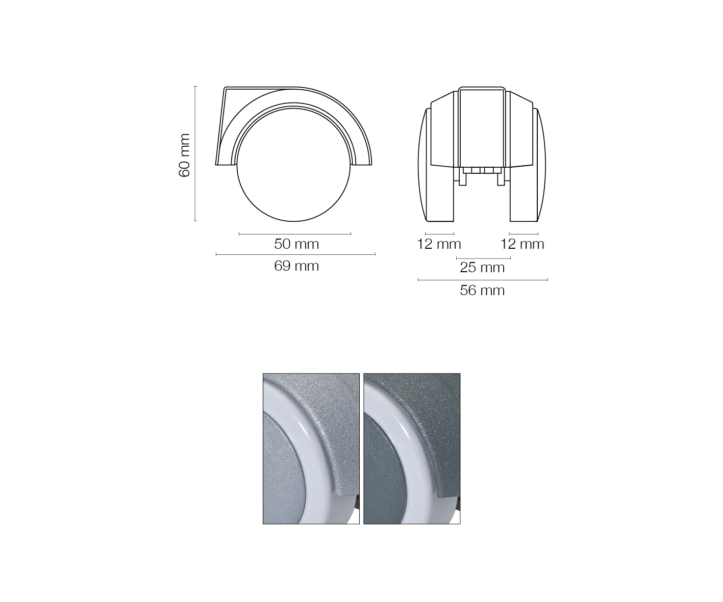 Nero, Grigio alluminio – su richiesta, Grigio scuro – su richiesta