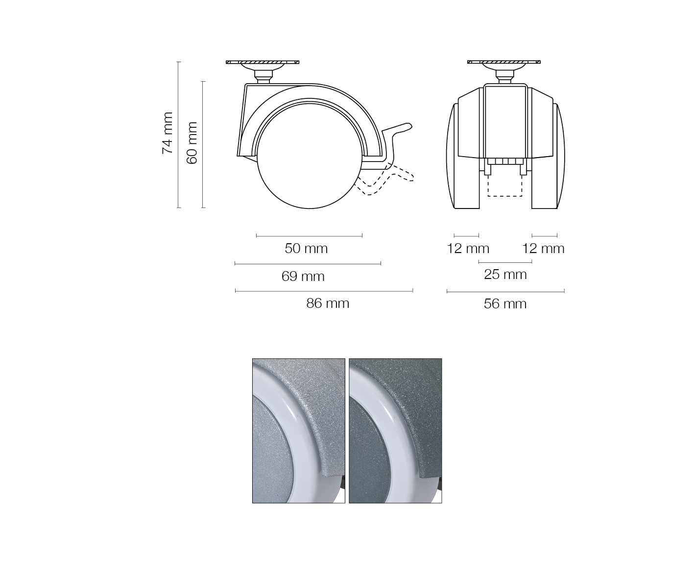 Ø 50, tipo pesante, con gomma e autobloccante.