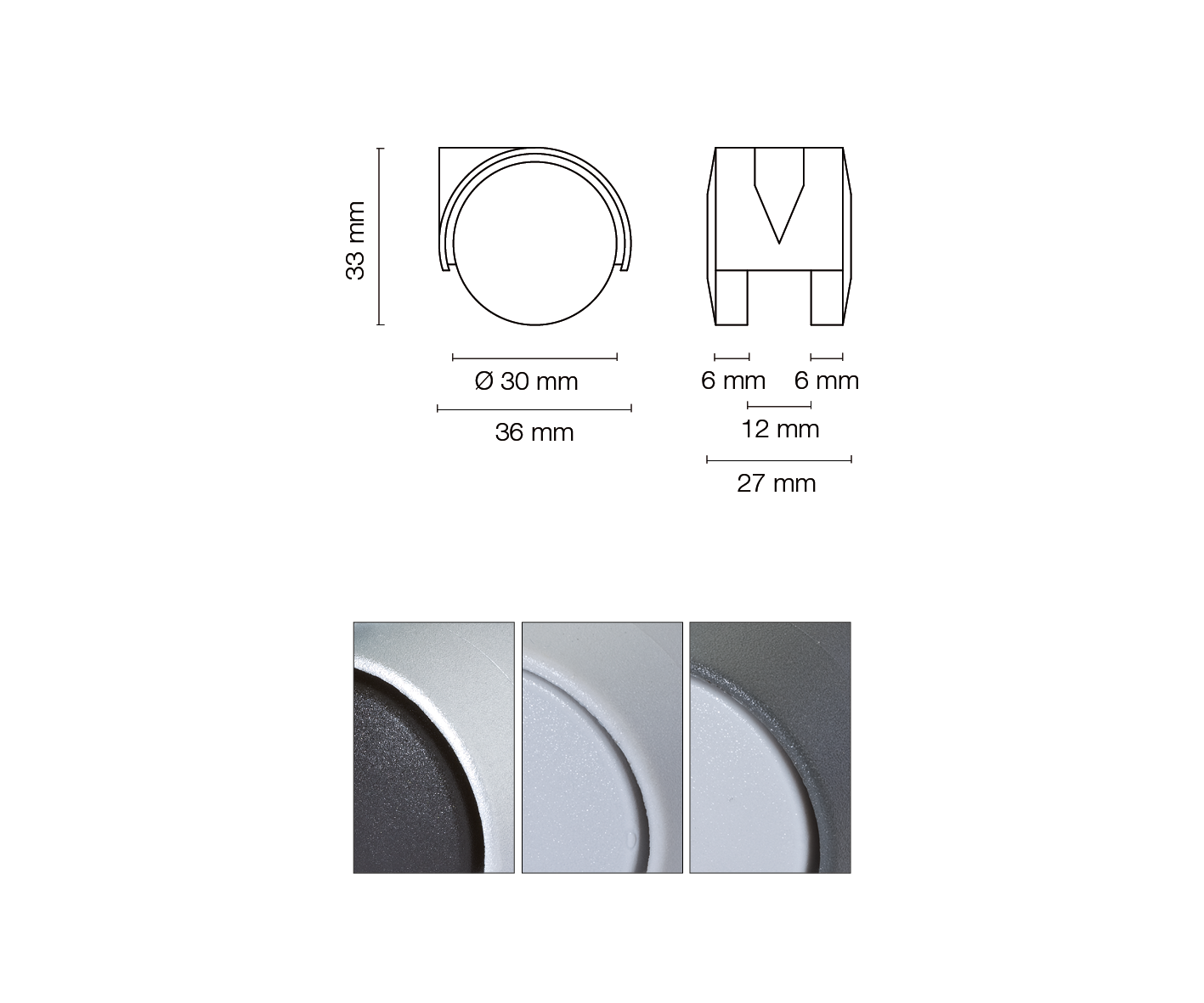 Grigio alluminio – su richiesta, Grigio scuro/disco grigio chiaro – su richiesta, Nero, Nichelato/disco nero
