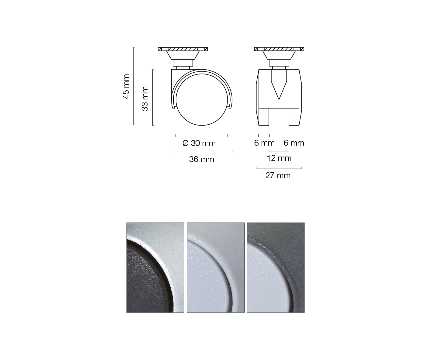 Grigio alluminio – su richiesta, Grigio scuro/disco grigio chiaro – su richiesta, Nero, Nichelato/disco nero