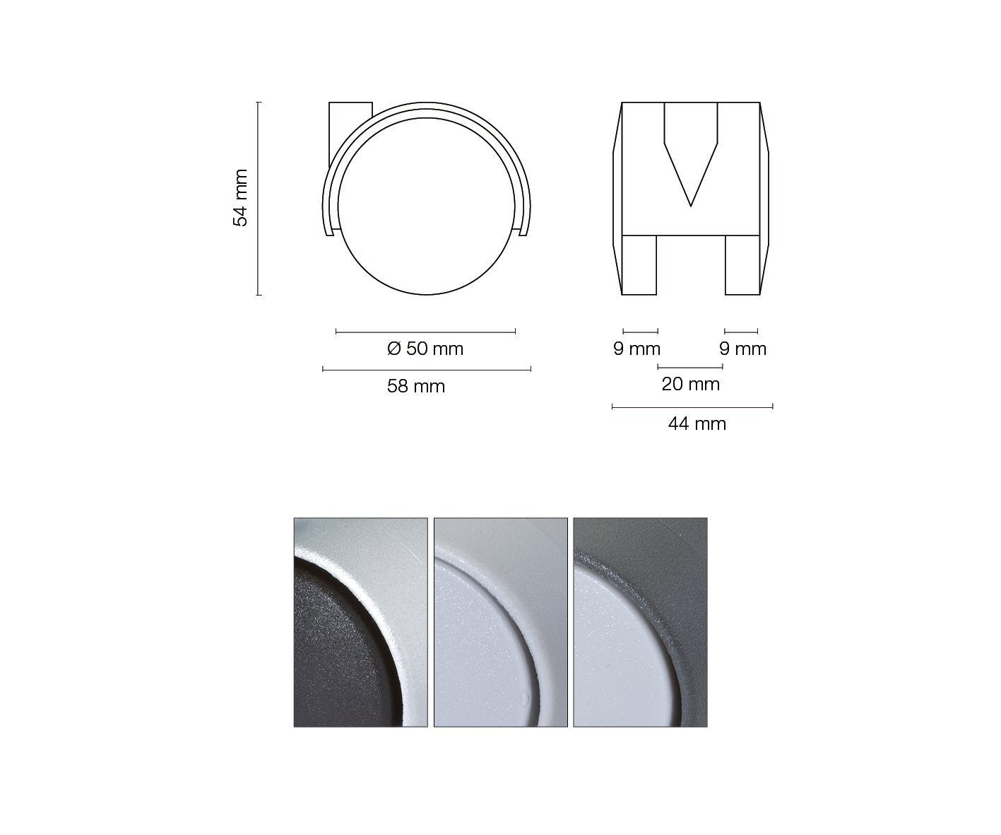 Grigio alluminio – su richiesta, Grigio scuro/disco grigio chiaro – su richiesta, Nero, Nichelato/disco nero